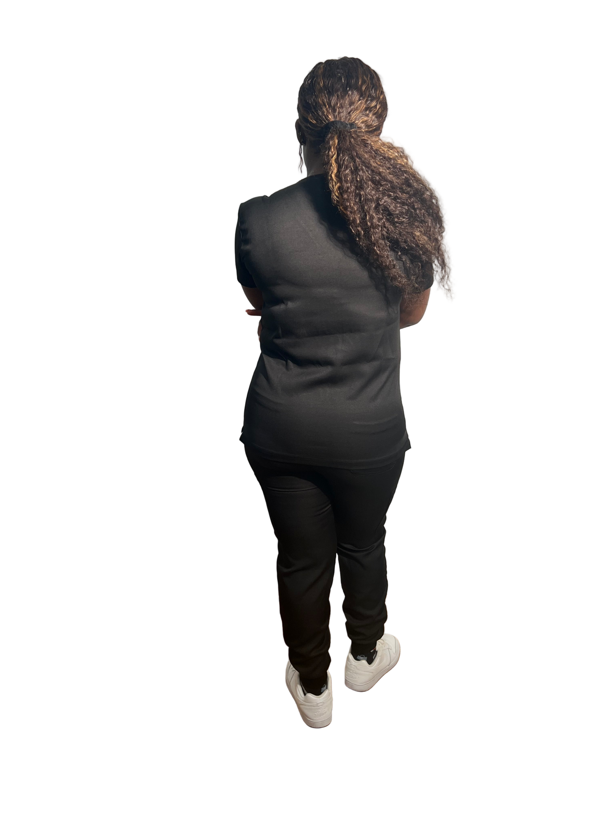The Women's Scrub Set, is a perfect blend of style, functionality, and comfort, designed for professionals who demand excellence in their work wear. The scrub shirt features a left chest pocket for convenient storage and an ID loop on the left shoulder, ensuring easy access to badges or accessories.
